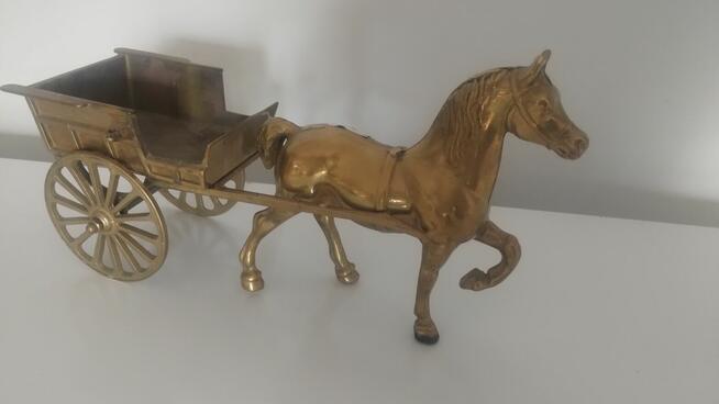 Witam serdecznie sprzedam pięknego konia z wozem wykonany z mosiądzu do 40 cm szer wozu 13 cm wys 22 cm .stan bardzo dobry ...